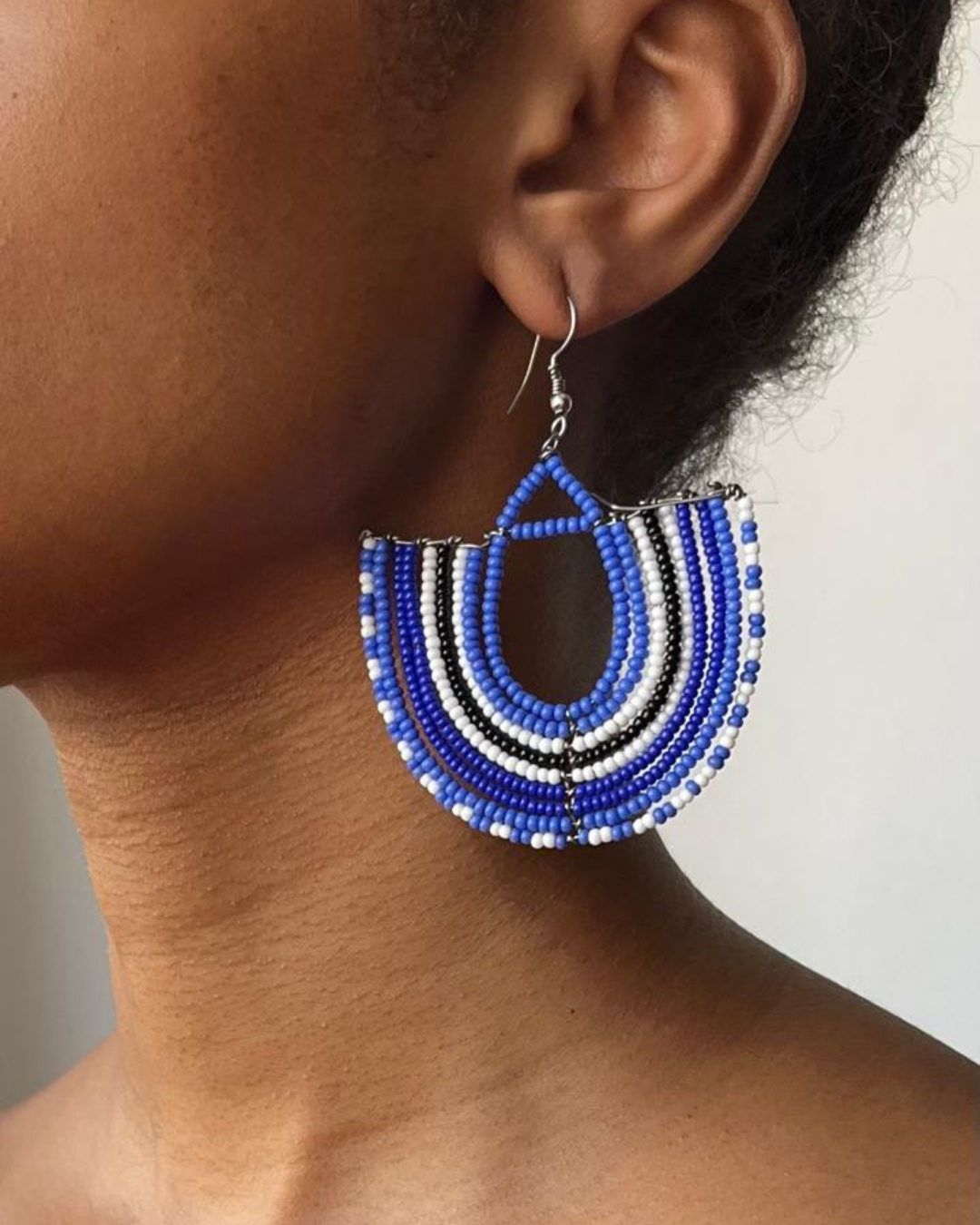 Design: Brincos artesanais inspirados na cultura Maasai, feitos a mão.
