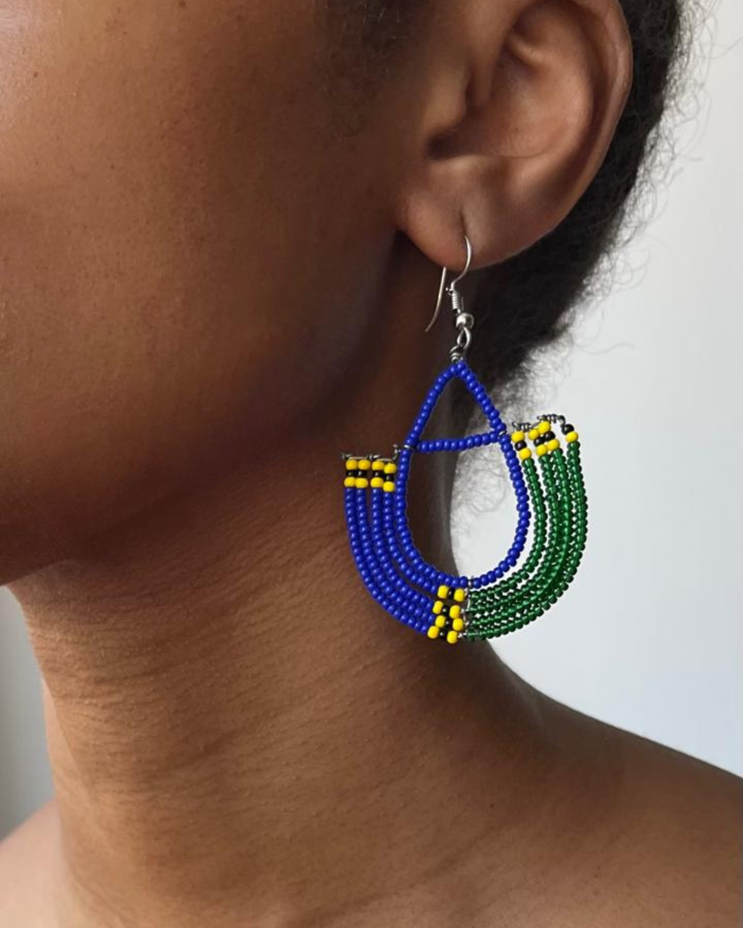 Design: Brincos artesanais inspirados na cultura Maasai, feitos a mão.